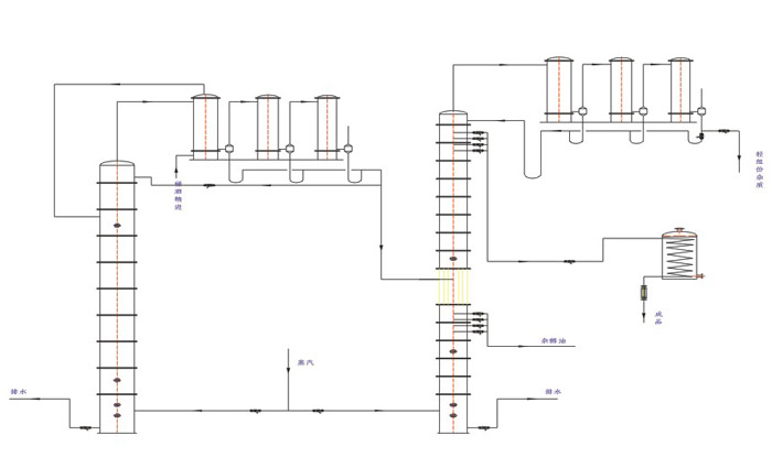 3. 采用特殊的升汽、降液結(jié)構(gòu)確保每層塔板參數(shù)穩(wěn)定。雜質(zhì)較大的原料采用雙塔形式。