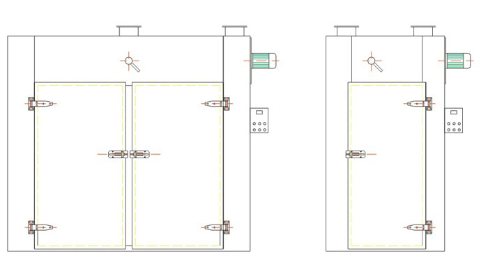設(shè)備用途: 本設(shè)備適用于制藥、化工、食品、農(nóng)副產(chǎn)品、水產(chǎn)品、輕工、重工等行業(yè)物料及產(chǎn)品的加熱固化、干燥脫水。如原料藥、中藥、中藥飲片、浸膏、粉劑、顆粒、沖劑、水丸、包裝瓶、顏料、燃料、脫水蔬菜、瓜果干、香腸、塑料樹脂、電器元件、烘漆等。 結(jié)構(gòu)特點: 1. 設(shè)備利用強制通風作用,箱內(nèi)設(shè)有可調(diào)式分風板,物料干燥均勻。 2. 熱源可采用蒸汽、導(dǎo)熱油、電、遠紅外,選擇廣泛。 3. 大部分熱風在箱內(nèi)循環(huán),熱效率高,節(jié)約能源。 4. 整機噪音小,運轉(zhuǎn)平穩(wěn)。溫度自控,安裝維修方便。 5. 整個循環(huán)系統(tǒng)全封閉,使烘箱的熱效率從傳統(tǒng)的烘房3~7%提高到目前的35~45%,最高熱效率可達50% 。