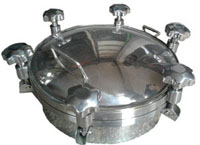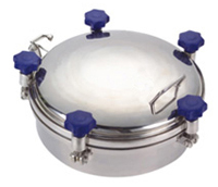 不銹鋼壓力人孔:此產(chǎn)品屬于衛(wèi)生級壓力人孔系列產(chǎn)品的一類,是一種負(fù)壓人孔,一般耐壓達(dá)到0.3MPa,通常主要安裝在乳制品、啤酒、飲料、制藥、生物工程等工業(yè)領(lǐng)域大罐及容器上面。因?yàn)閼?yīng)用部位對壓力的承受力有很高要求,所以對于快開人孔的不銹鋼板的選擇和厚度及快開人孔本身的強(qiáng)度和密封性的要求是技術(shù)的關(guān)鍵所在。