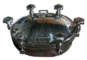不銹鋼橢圓人孔:此產(chǎn)品屬于衛(wèi)生級(jí)壓力人孔系列產(chǎn)品的一類,是一種負(fù)壓人孔,一般耐壓達(dá)到0.3MPa,通常主要安裝在乳制品、啤酒、飲料、制藥、生物工程等工業(yè)領(lǐng)域大罐及容器上面。因?yàn)閼?yīng)用部位對(duì)壓力的承受力有很高要求,所以對(duì)于快開人孔的不銹鋼板的選擇和厚度及快開人孔本身的強(qiáng)度和密封性的要求是技術(shù)的關(guān)鍵所在。 本產(chǎn)品特點(diǎn)是節(jié)省空間,比較適合罐體直徑較小的場(chǎng)合。