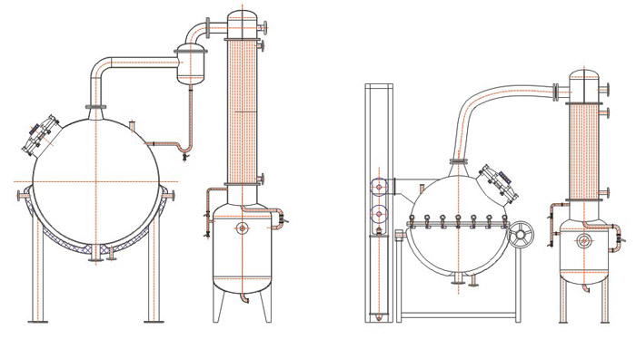 2. 球形濃縮罐采用夾套加熱方式,冷凝器為列管式,可獲得很高的成品濃度。